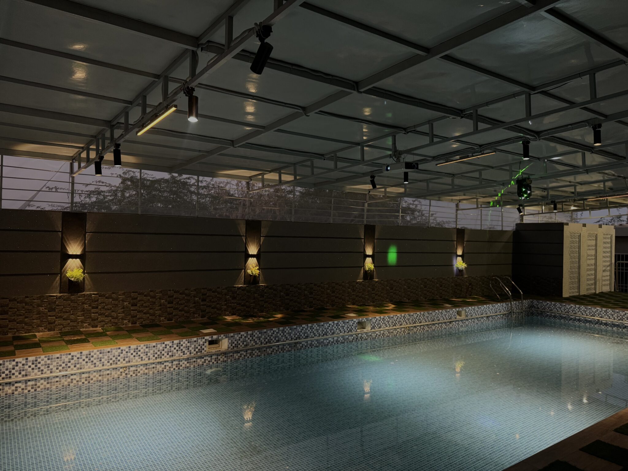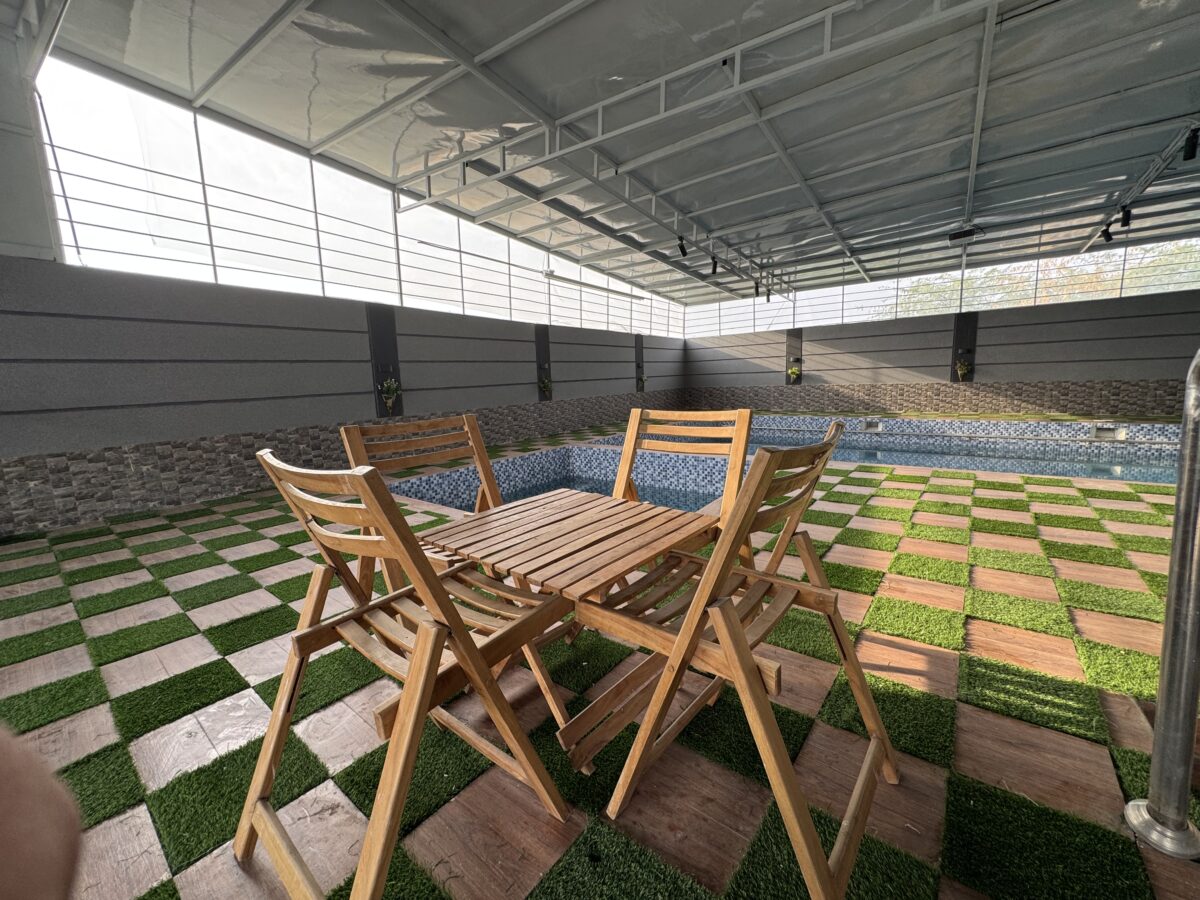 State-of-the-art amenities at Aristo Resort include a stylish indoor lounge, relaxing outdoor lounge spaces, a private swimming pool, gaming area, BBQ zone, and expansive open grounds, designed for comfort, leisure, and memorable stays.